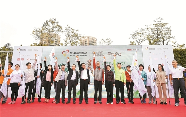 1月1日上午,深圳市文明辦、市關愛辦聯合深圳晚報社、騰訊公益等單位,在福田區香蜜公園舉辦“步步行善”新年公益網絡行動,并以此為標志,在全市范圍啟動2018新春關愛行動。深圳市委宣傳部副部長、市文明辦主任吳定海,深圳市委宣傳部文明處處長張玉領,深圳市關愛行動組委會辦公室常務副主任、深圳報業集團副總編輯、深圳晚報總編輯丁時照,廣東省第二扶貧協作工作組副組長、百色指揮部指揮長、百色市政府副秘書長吳軍軍等領導出席了啟動儀式,并為愛心企業頒發關愛之星牌匾和十大愛心基金會授步步行善公益伙伴旗幟。吳定海宣布第三屆步步行善活動正式啟動。