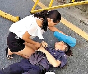 挺身而出,護(hù)士跪地?fù)尵缺昏F欄砸暈的路人