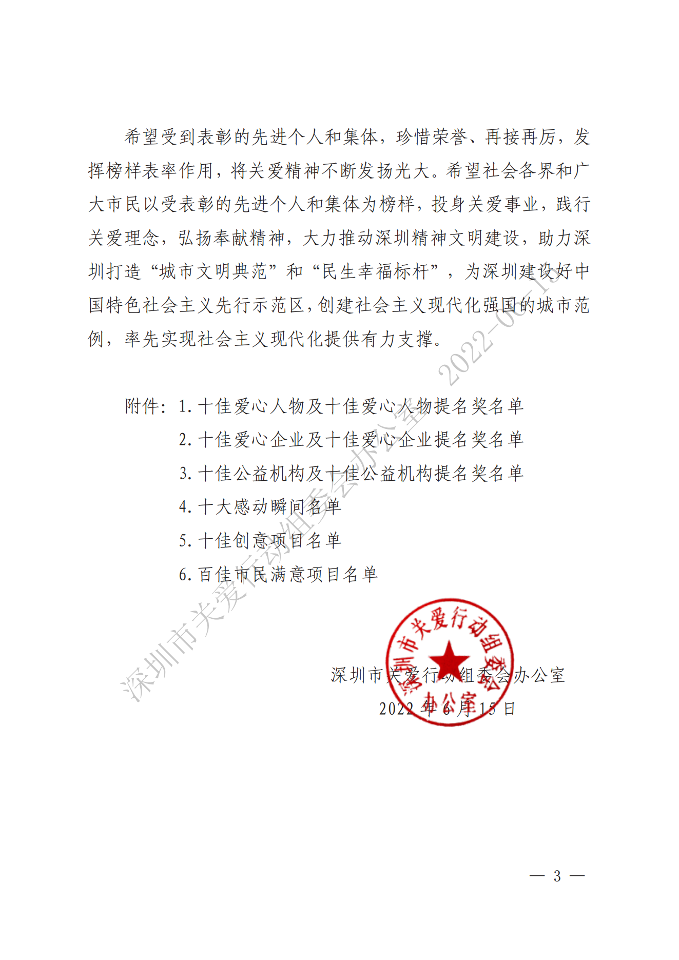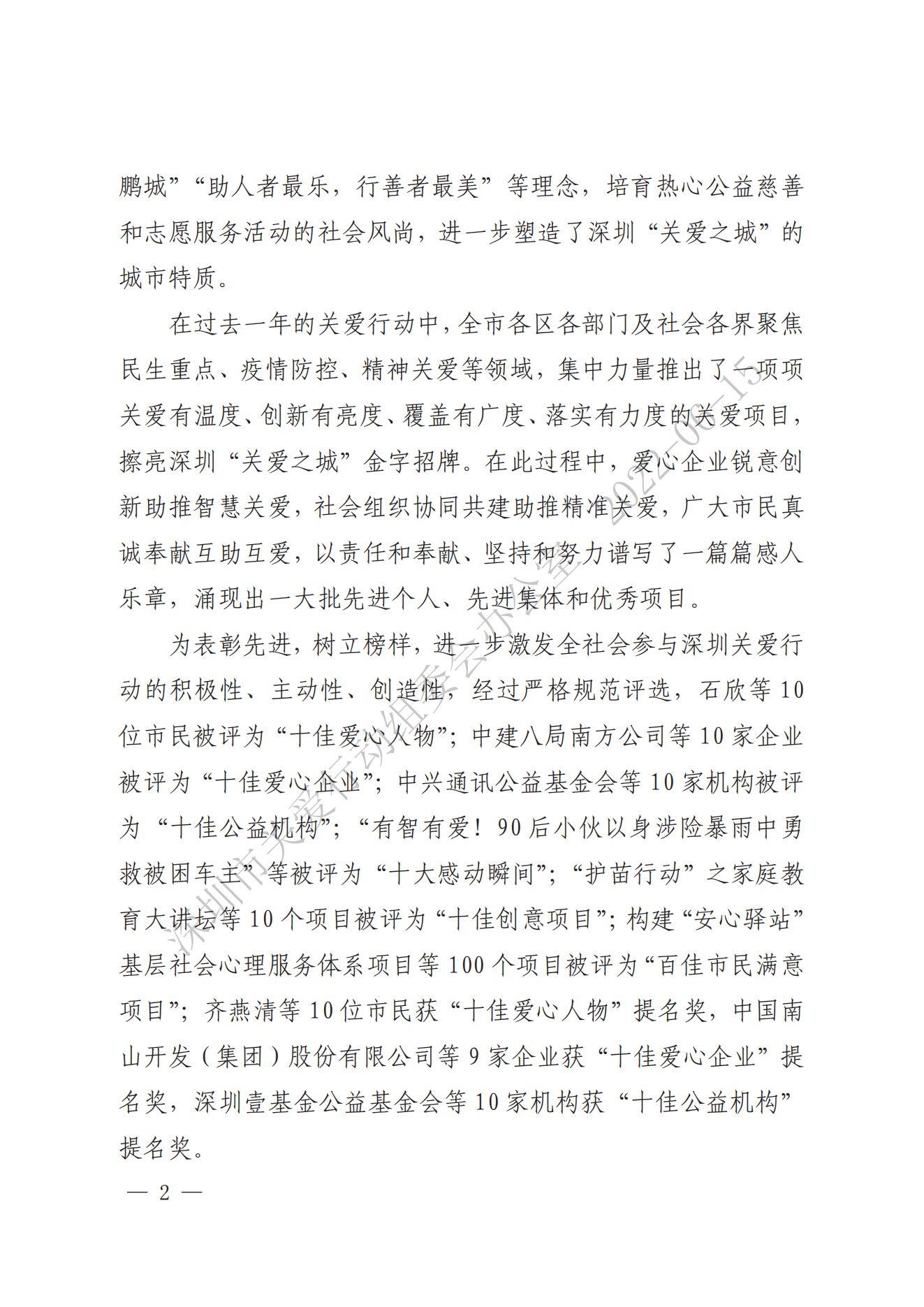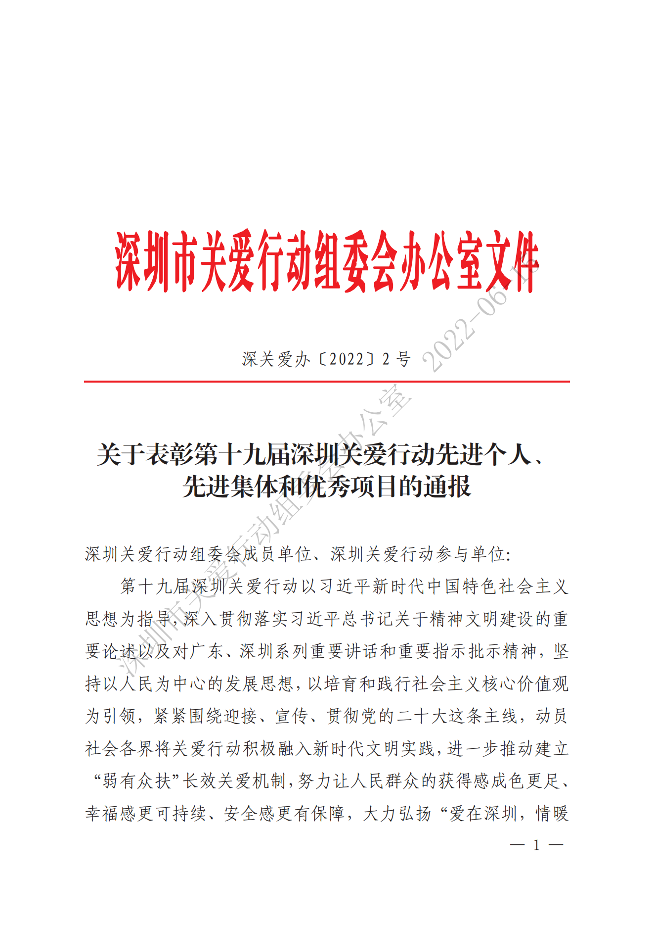 關于表彰第十九屆深圳關愛行動先進個人、先進集體和優(yōu)秀項目的通報