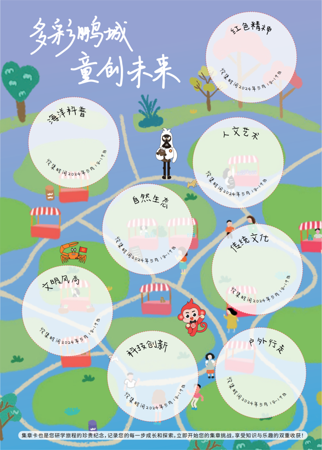 此外還有研學主題集郵打卡活動,與攤位完成互動后,可獲得對應主題蓋章,集齊5個將獲得禮物一份。