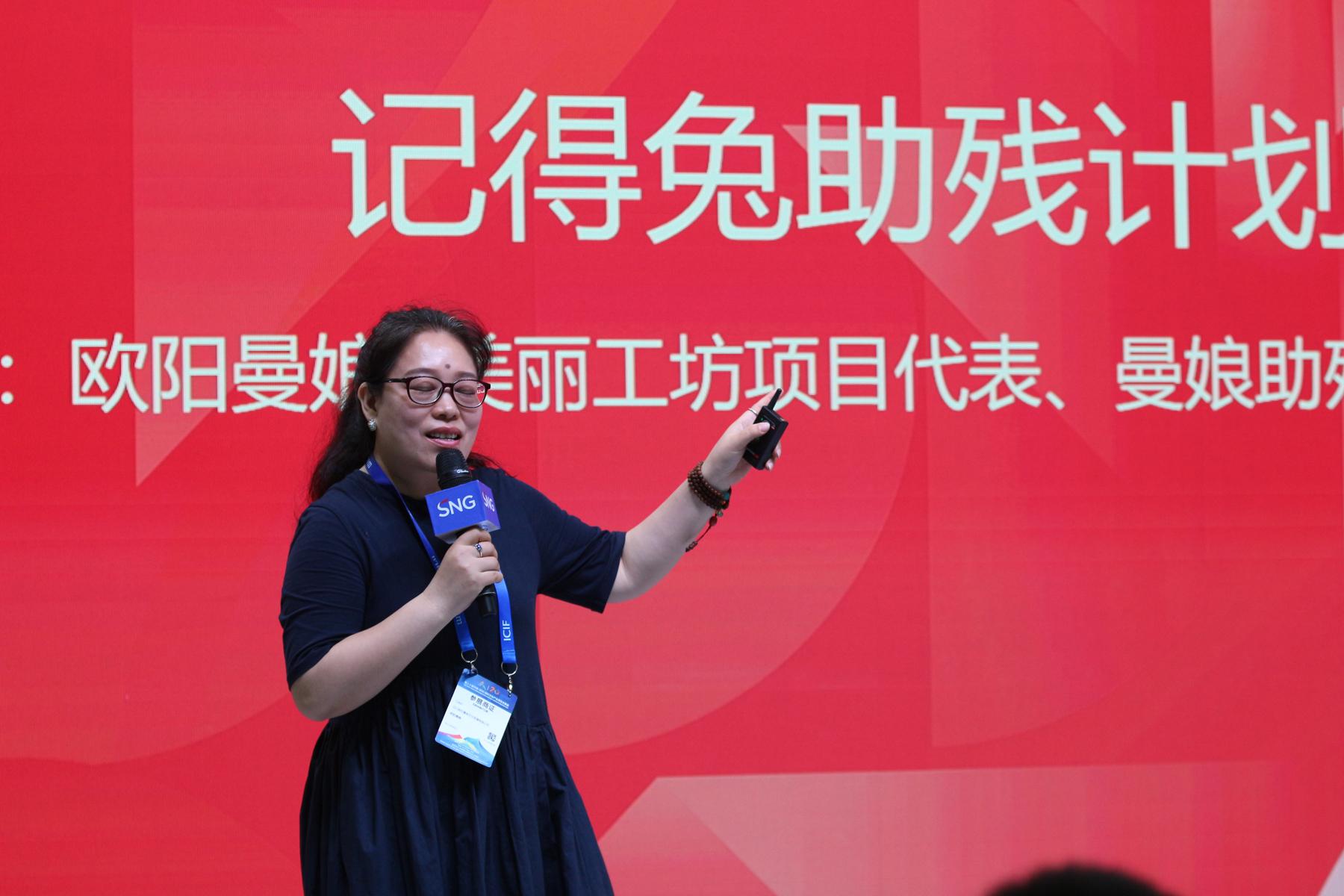 “美麗工坊”項目代表、曼娘助殘服務中心理事長歐陽曼娘以“舊衣改成‘記得兔’用一件舊衣服解決殘疾人就業”為題分享了舊衣改造文創助殘項目。“目前,項目‘線上+線下’培訓2131人,解決靈活居家創業者超700人,培養殘疾人‘師傅級’人才超60人,已完成培養8個殘疾人創業者在四川范圍內開展‘記得兔舊衣改造助殘計劃教就工作’。”歐陽曼娘說,未來五年計劃在200個百萬級人口城市開展記得兔舊衣改造助殘計劃。