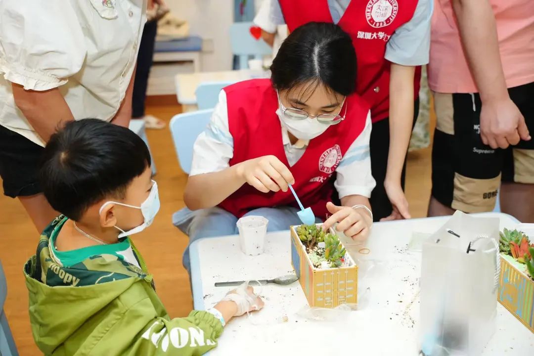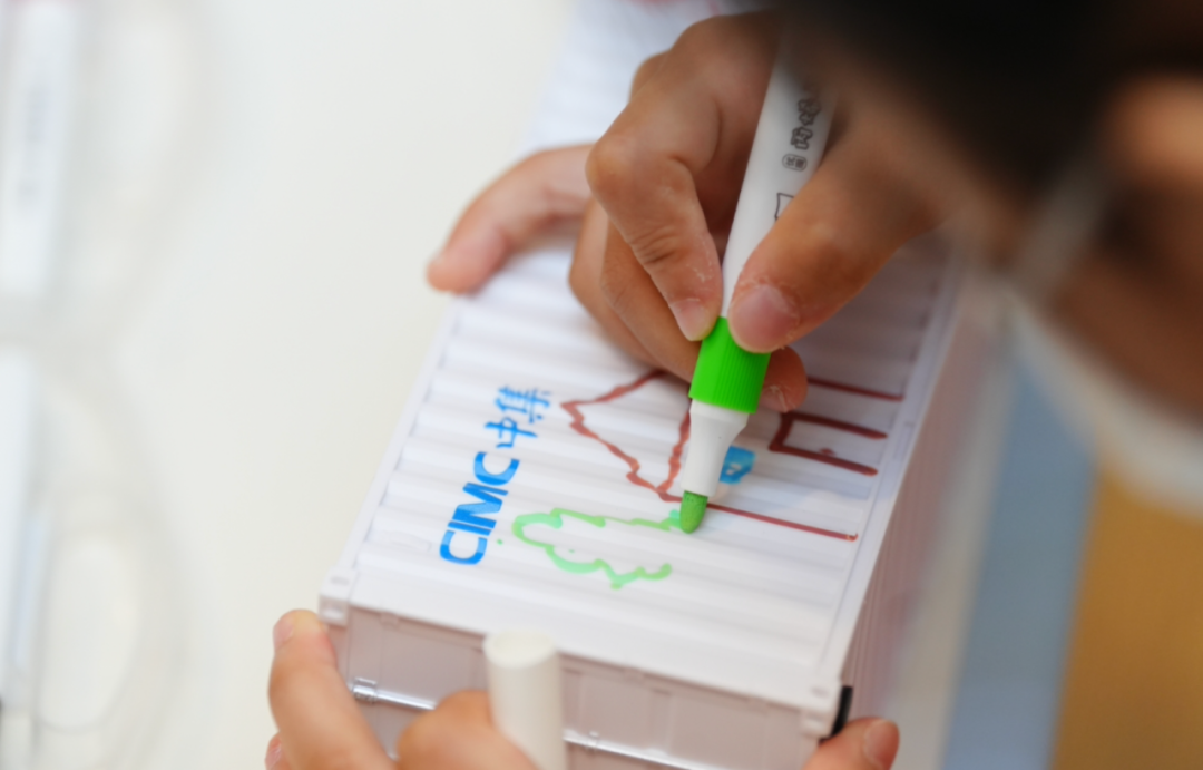 活動現場,中集集團的企業志愿者和患兒現場開展極具企業特色的兒童醫療輔導創意活動——創意集裝箱盆栽DIY。小朋友們用豐富的想象力和創造力,在集裝箱模型上繪制了自己心中的美好圖景,展示了他們對關愛空間的期待和祝福。在志愿者們的協助下,他們種下了多肉植物,為集裝箱盆栽增添了生機。