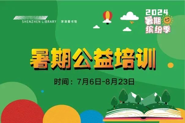 活動簡介:今年的“暑期公益培訓課”在深圳圖書館兩館三地同步開展。課程設置包括朗誦藝術培訓、科創培訓、職業體驗、美育教學、安全教育、益智魔方、趣學英語、國學教育等,共開設118場次課程,為歷年之最。深圳圖書館邀請了各行業內專業、高水平的老師,為孩子們設置暑期免費興趣班,打造一個讓家長們安心托付的精彩學習天地。在這里,小讀者們不僅能夠沉浸于知識的海洋,收獲滿滿,還有機會贏取精致禮品及學業成就證書,讓學習之旅更加充滿樂趣與成就感。快跟我們一起學起來吧~