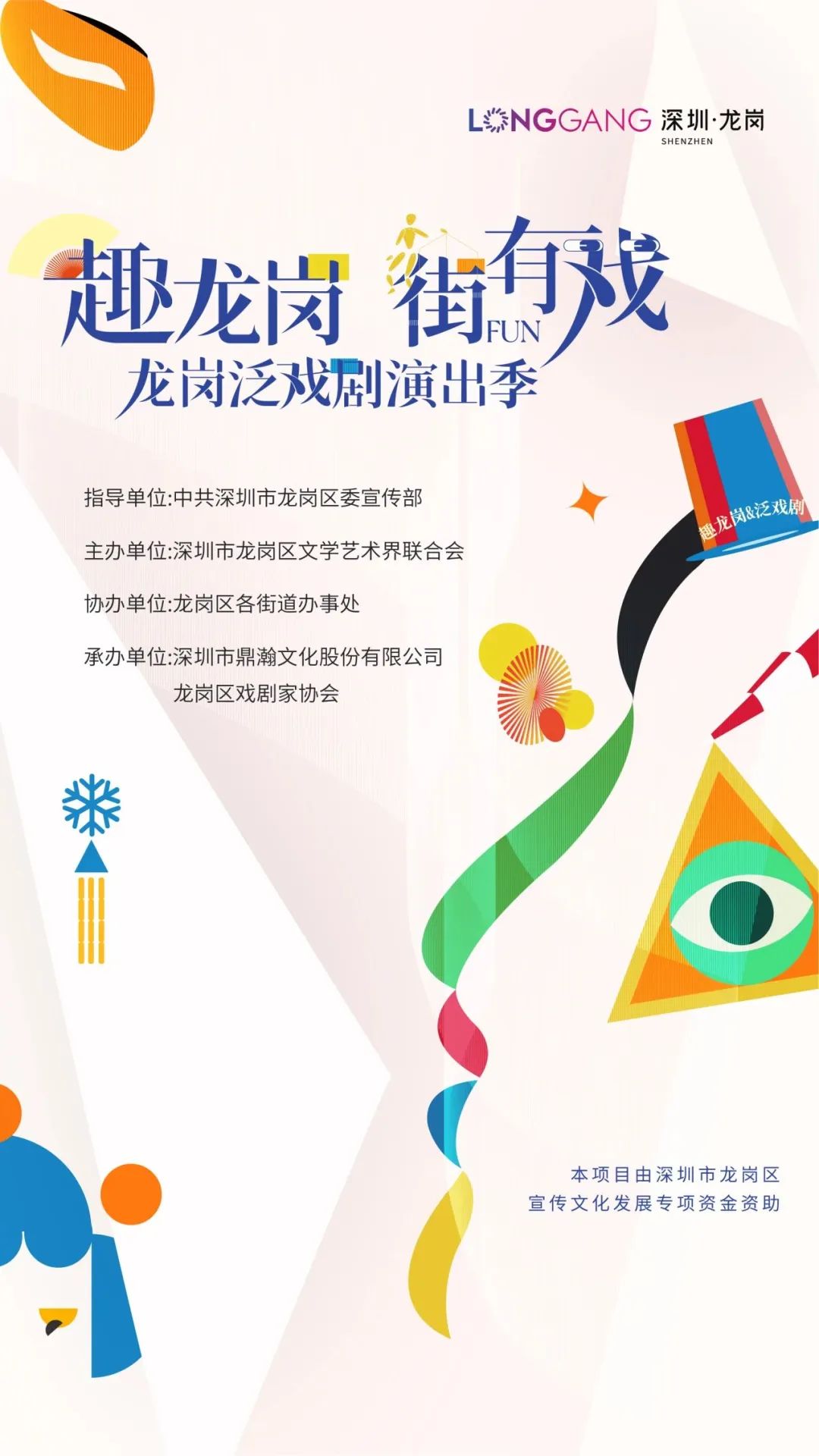 活動簡介:龍崗泛戲劇演出季聯動龍崗11個街道, 分別由巡游、兒童戲劇、青年戲劇三部分內容組成11場泛戲劇演藝活動,以快閃巡游作為開場,由兒童戲劇與青年藝術家作品組合,為大家奉上精彩的泛戲劇表演,拉進戲劇與觀眾的距離,連接戲劇文化走向民眾,讓戲劇成為一種美好的生活方式。