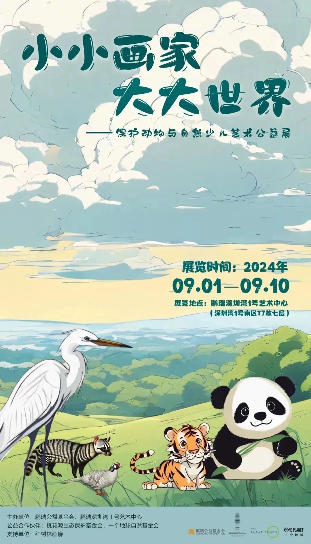 活動簡介:在鵬瑞深圳灣1號藝術中心,一場特別的展覽正悄然綻放——以“小小畫家·大大世界”為主題的保護動物公益藝術展。此次展覽由鵬瑞公益基金會、鵬瑞深圳灣1號藝術中心主辦,攜手桃花源生態(tài)保護基金會、一個地球自然基金會,通過孩子們純真心靈創(chuàng)作出的動物世界,呼吁大家保護生物多樣性、與自然和諧相處,共同守護地球生態(tài)平衡。