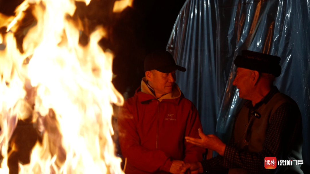 篝火旁,巴依卡與深圳關(guān)愛行動公益基金會一行暢談甚歡。