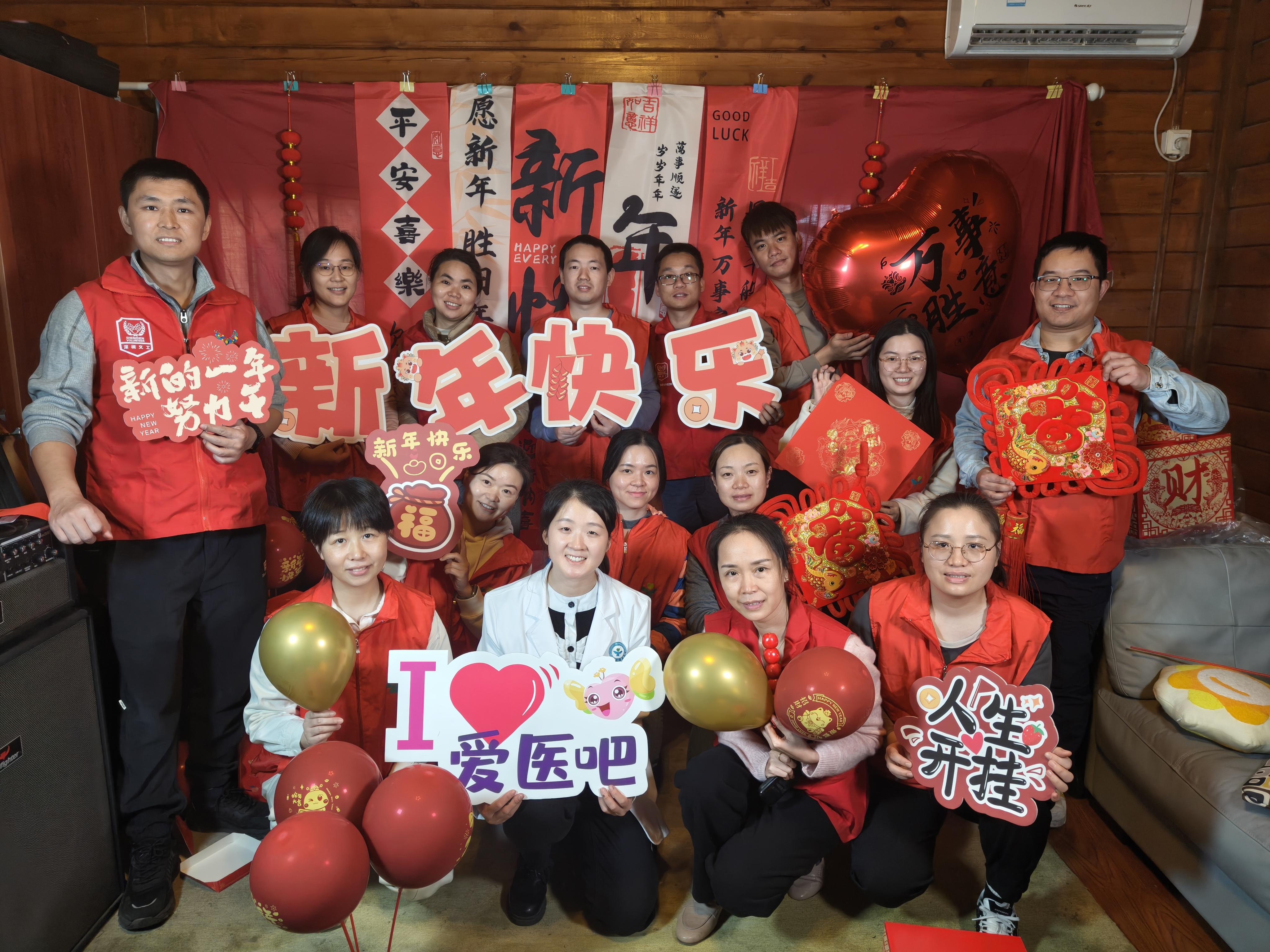 活動現場,社工將活動現場布置得喜慶而溫馨,各種裝飾物彰顯著濃濃的年味,讓醫護人員在醫院也能充分感受到節日的溫馨與歡樂。據統計,本次活動共吸引了328位醫護人員參與,并為他們發放了328份新春禮包。