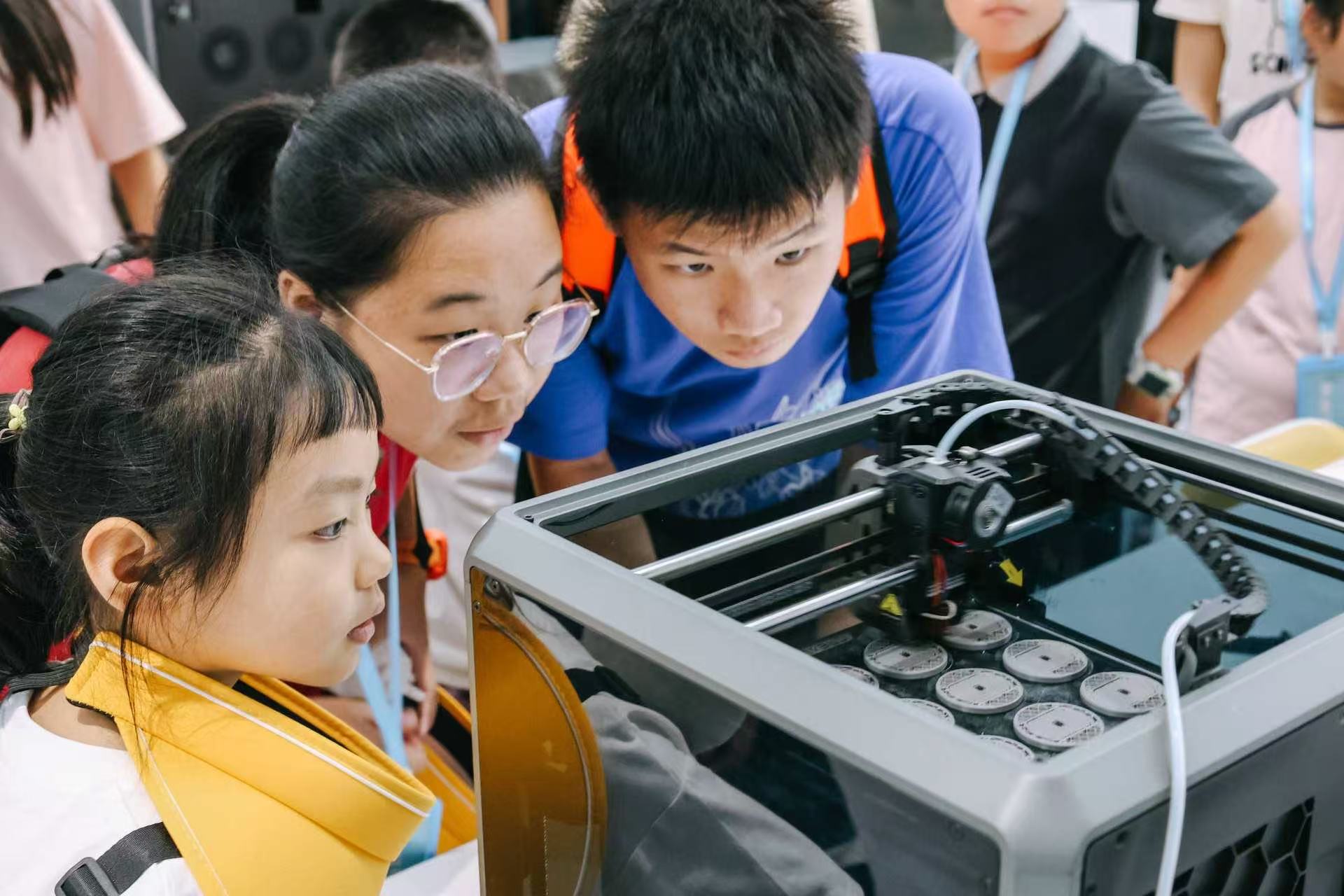隨后的行程里,科技的魅力持續(xù)發(fā)酵。孩子們還走進(jìn)深圳創(chuàng)想三維工業(yè)美學(xué)博物館和深圳科學(xué)技術(shù)館(新館),化身“科技智造家”,通過(guò)答題互動(dòng)收獲獨(dú)特的3D打印紀(jì)念品,在深圳科學(xué)技術(shù)館(新館)觀看數(shù)字蝴蝶生長(zhǎng),參與皮影戲表演,感受宇宙飛船航行,體驗(yàn)與AI機(jī)器人競(jìng)技等,在奇幻的科學(xué)世界里插上探索與創(chuàng)新的翅膀,開(kāi)啟一場(chǎng)沉浸式探索科學(xué)世界之旅。