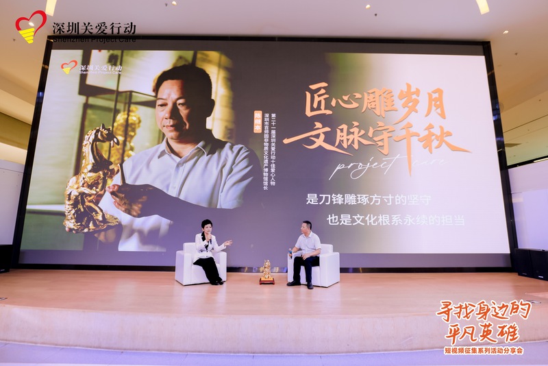 除了公益領域的堅守,文化傳承與生命守護的故事同樣令人敬佩。第二十一屆深圳關愛行動“十佳愛心人物”、深圳市百師園非物質文化遺產博物館館長陳繼本就向大家分享了自己傳承木雕金漆工藝與非遺文化的故事。身為 “木雕金漆工藝” 第五代傳承人,他不僅精研技藝,還自己出資出力,耗時三年將一片舊工業區改造為百師園非物質文化遺產博物館,又進一步打造“百師園文化產業園”,以非遺作品展覽、研學等多元平臺,構建起集展覽展示、研學體驗于一體的非遺傳承矩陣。他以不一樣的堅持,讓傳統工藝在新時代煥發新生。