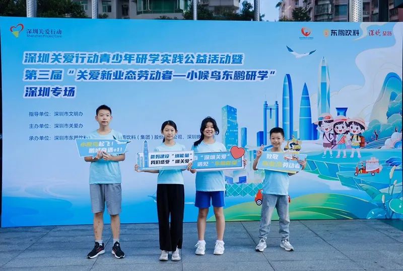 “小候鳥研學”活動始于2023年,2024年在深圳市文明辦的指導下,發起成立了深圳關愛行動青少年研學實踐公益平臺。在政府、企業、公益機構的共同關懷下,每年暑假“小候鳥”們從全國各地飛來深圳,與親人團聚,同時也用自己的腳步丈量父母奮斗的足跡,用童真的視角觀察這座青春的城市,在互動體驗中收獲成長的自信。這一活動也實實在在幫助到新業態勞動者實現“團圓夢”,增強對孩子的假期安全守護和心理健康關懷。