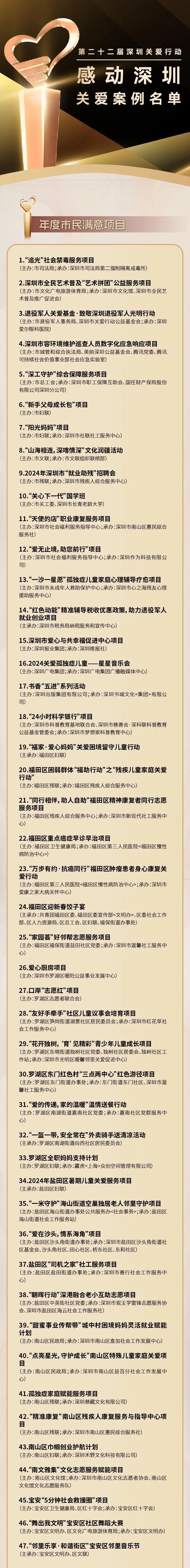 第二十二屆深圳關(guān)愛行動“感動深圳”關(guān)愛案例名單已揭曉