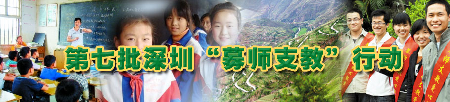 ?由深圳市關愛辦、深圳商報、深圳市慈善會、許凌峰“募師支教愛心聯盟”等共同主辦的第七批“募師支教”行動以“融聚希望、播撒愛心”為主題。其招募的80名志愿者將分赴深圳市對口支援的甘肅隴南文縣、康縣,以及江西井岡山和廣西等地的山區學校,主要從事小學語文、數學、英語、計算機等學科教學工作。