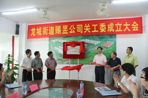 省關工委副主任劉林松(右三)等領導為賜昱公司關工委成立揭牌 |
